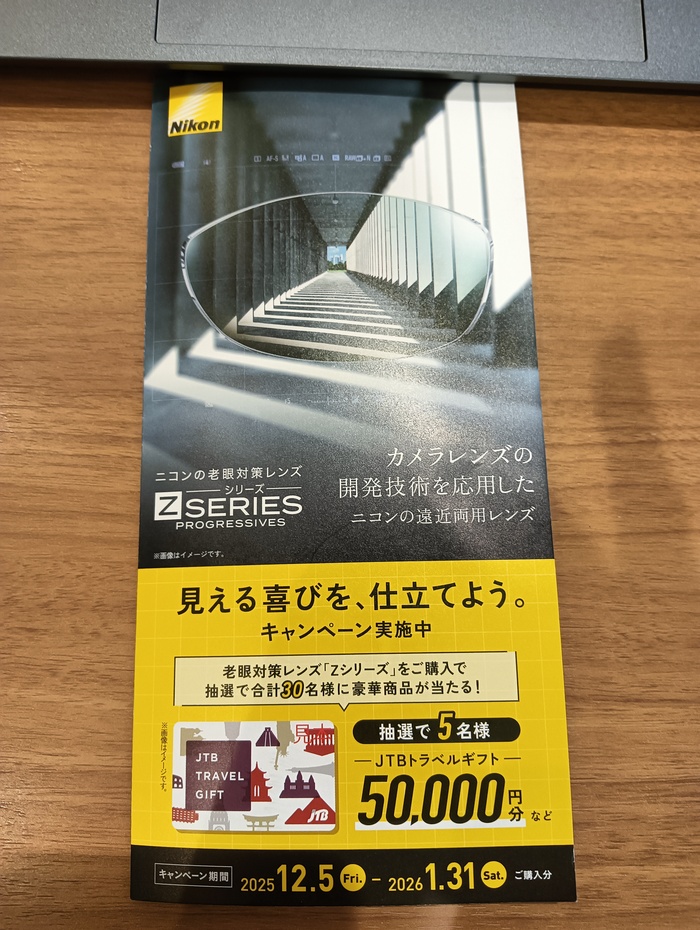 遠近両用レンズをご検討のお客様には、レンズ購入と同時に応募できるお得なチャンスです。