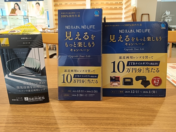 遠近両用レンズをご購入の方を対象に、抽選で素敵な商品が当たるキャンペーンです。